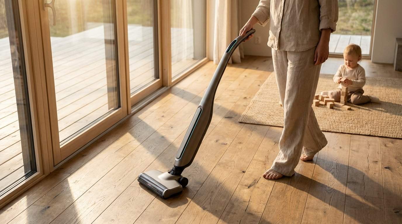 Kontekst: Test przeprowadzono w marcu 2026 roku w domu o powierzchni 150 m² z podłogami mieszanymi (gres, panele winylowe, lakierowany parkiet). W domu przebywa dwoje dzieci oraz pies z długą sierścią.